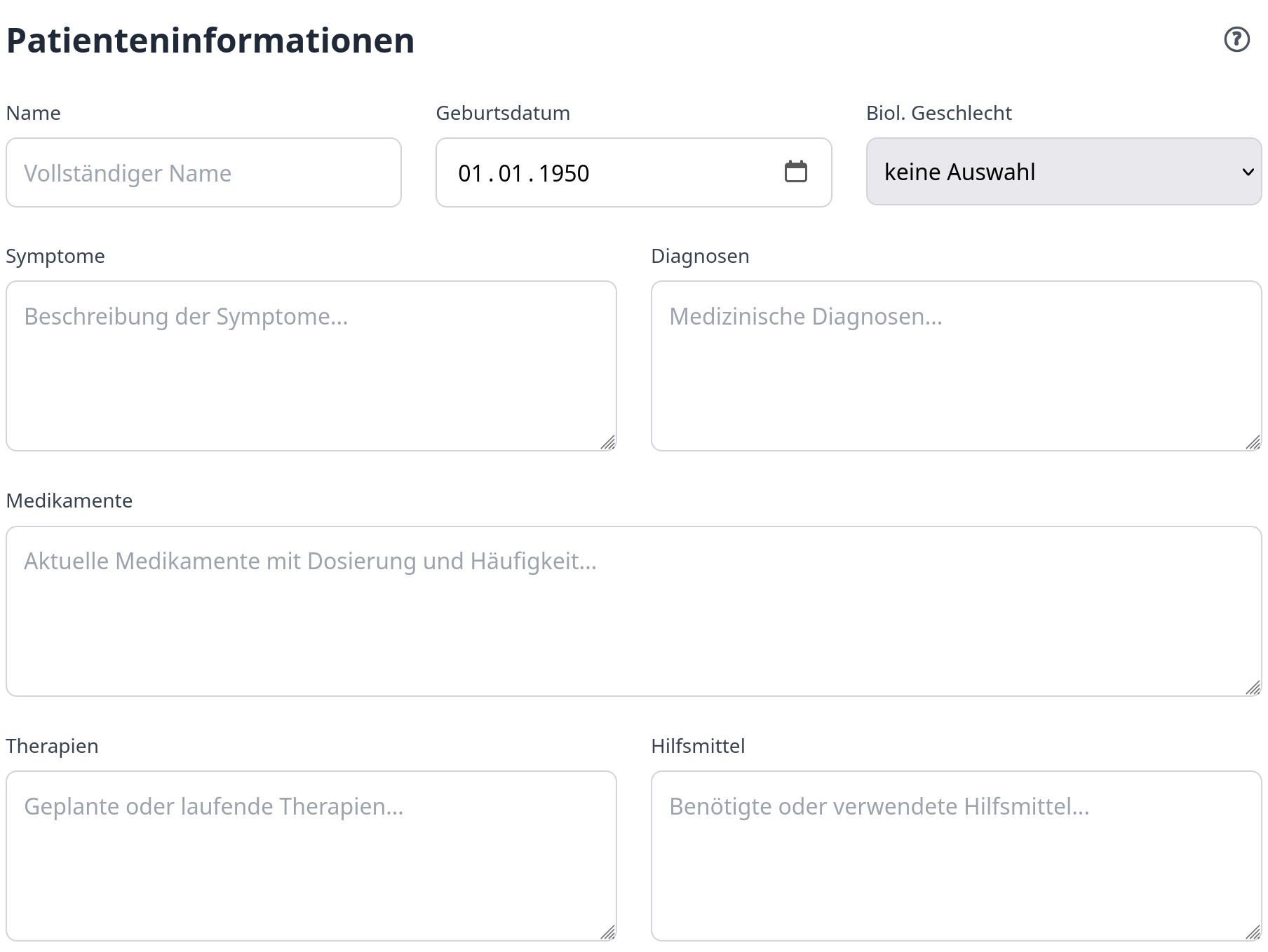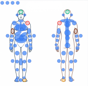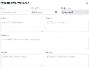 - Interaktive Körperkarte zur Markierung von Schmerz- und Symptomregionen zur Unterstützung einer visuellen Darstellung komplexer Beschwerden.